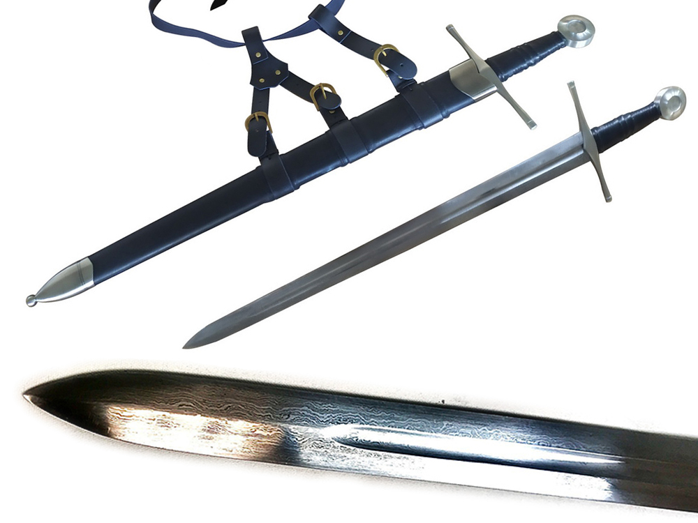 13th Century Knightly Arming Sword 65MN Spring Steel Damascus FOLDED
