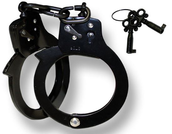 Heavy duty handcuffs in black complete with a pair of keys. Very Tuff and law enforcement grade.
