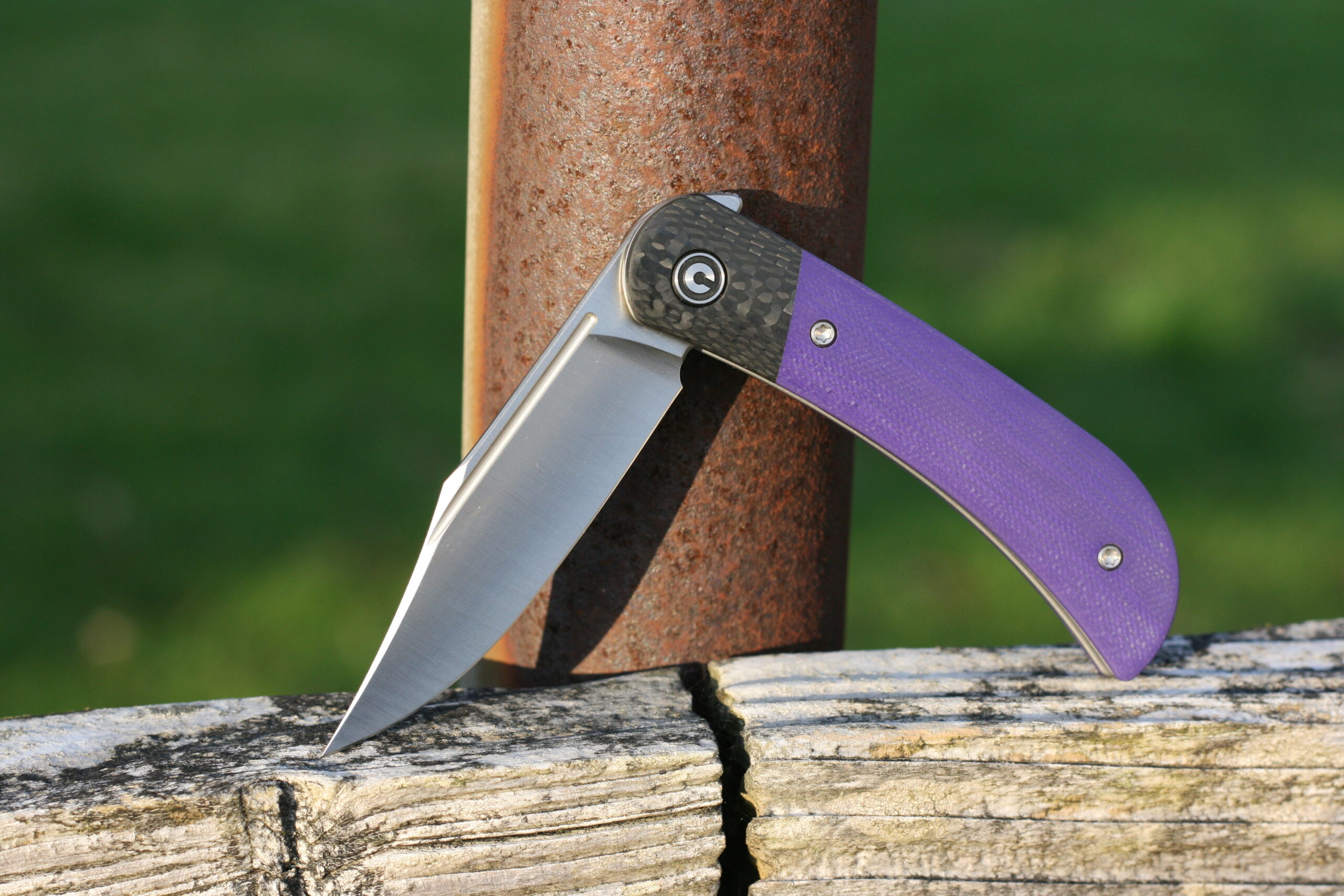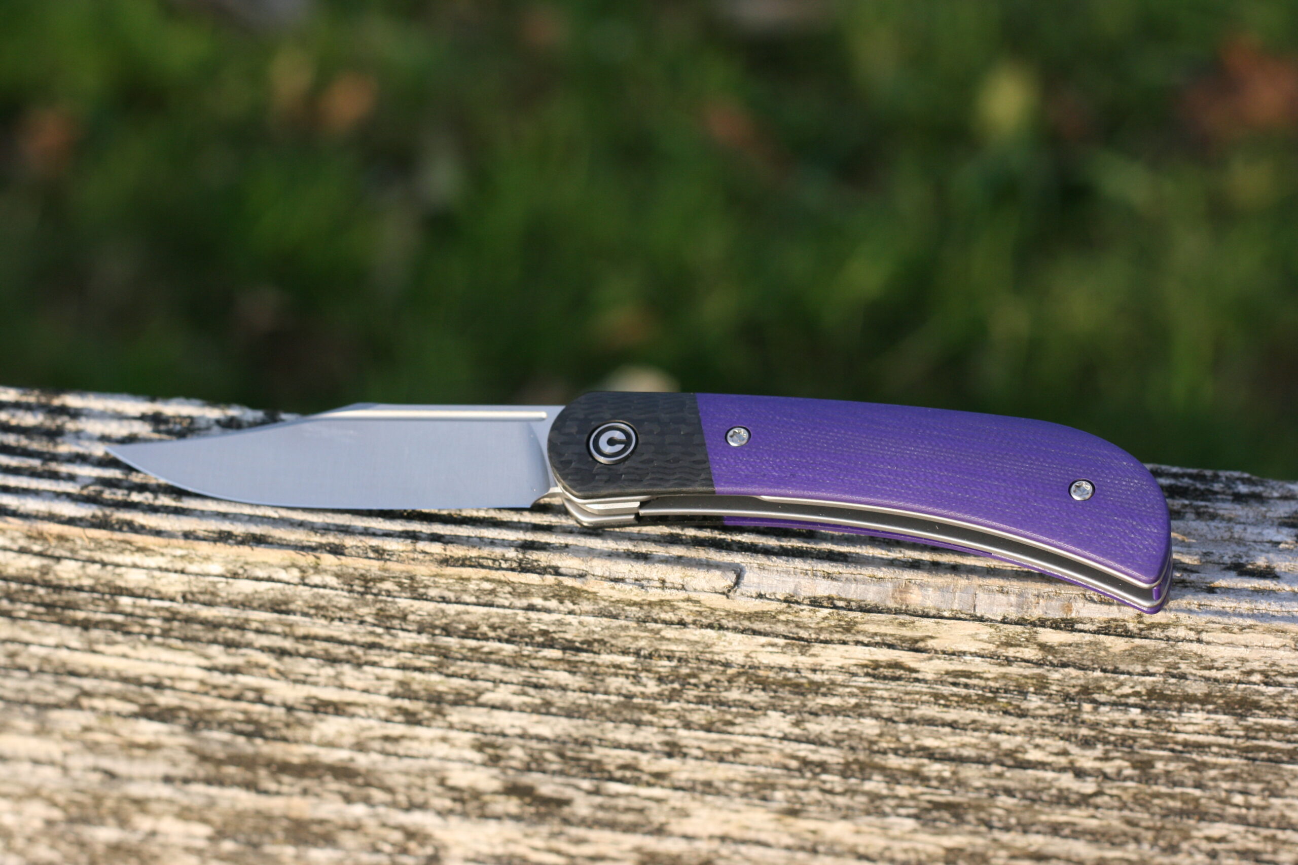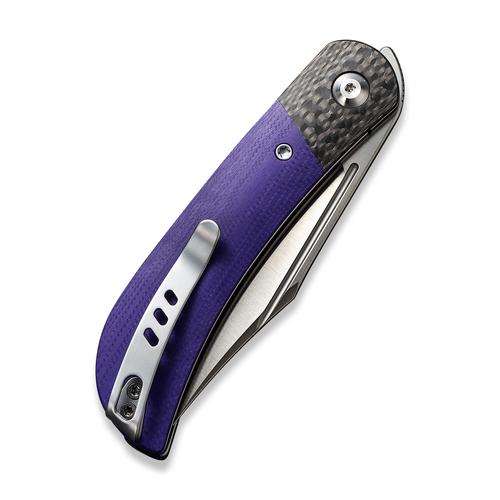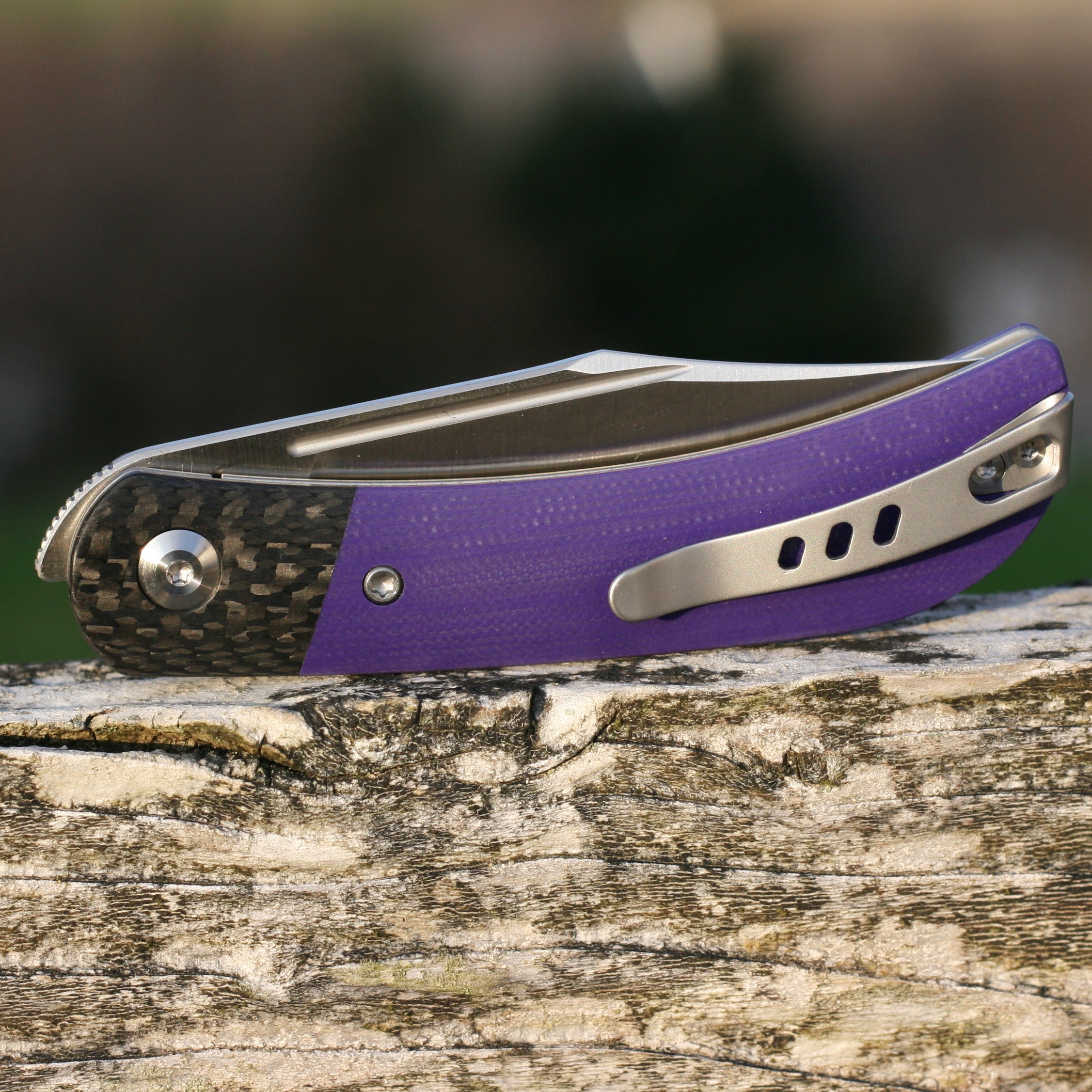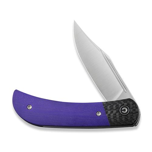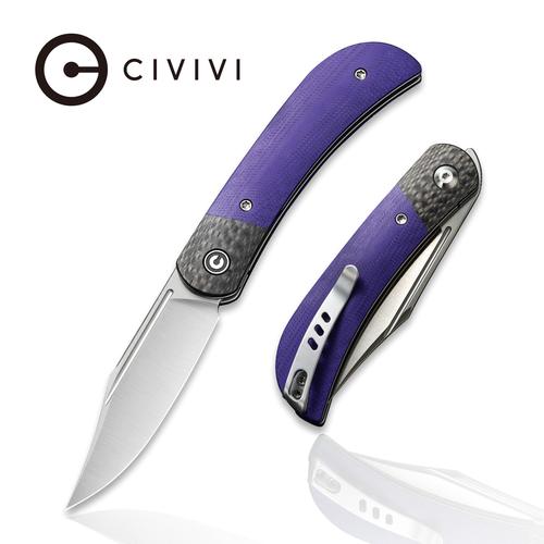 CIVIVI Appalachian Drifter II Front Flipper Knife Purple G10 Handle With Twill Carbon Fiber Bolster (2.96″ Satin Finished Nitro-V) C19010C-3