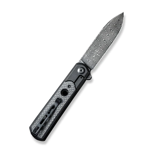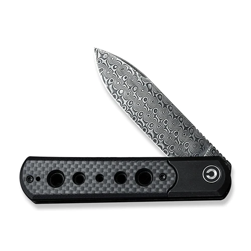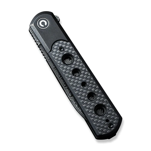 CIVIVI Banneret Black Steel Handle With Black G10 / Twill Carbon Fiber Inlay (3.48″ Black Hand Rubbed Damascus) C20040D-DS1