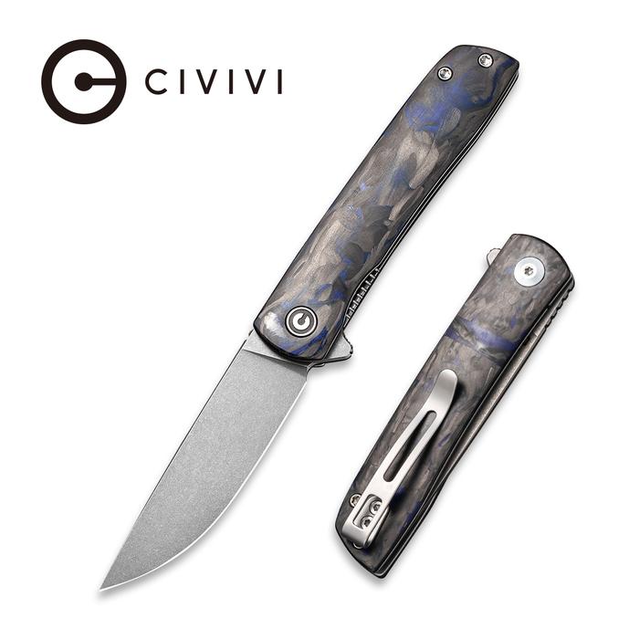 Civivi Bo Flipper Knife – Carbon Fiber Blue Handle (2.92” Gray Stonewashed Nitro-V) C20009B-A