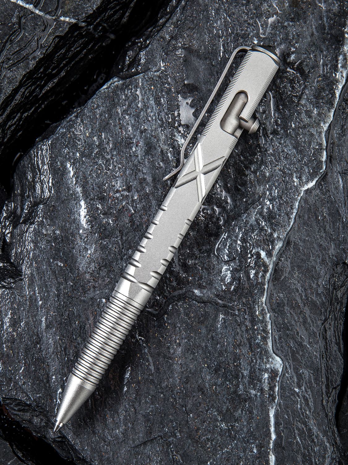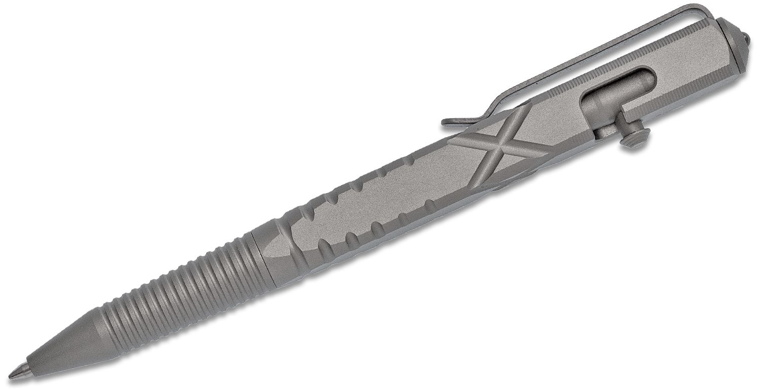 The aluminum body starts off square with rounded edges before tapering down to a cylinder for plenty of handwriting comfort. A ball end doubles as a glass breaker and a machined stainless steel pocket clip and screw make sure this pen has plenty of style, even when clipped in your pocket.