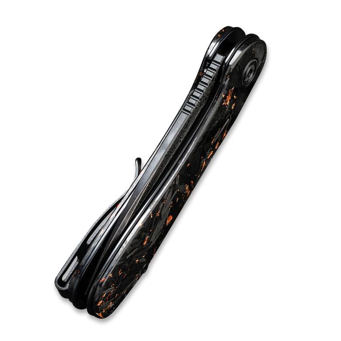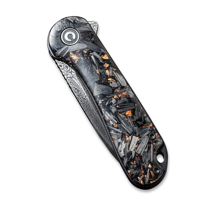 Civivi Elementum Flipper Knife – Shredded Carbon Fiber And Copper Shred In Clear Resin Contoured Handle (2.96″ Black Hand Rubbed Damascus) C907C-DS3