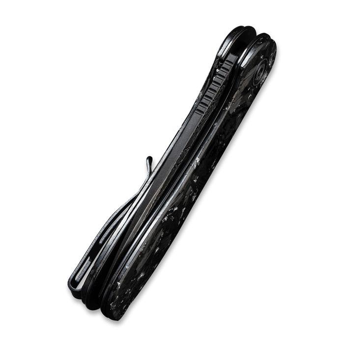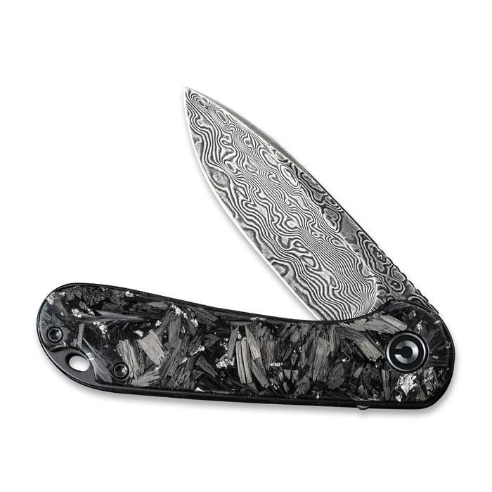 Civivi Elementum Flipper Knife – Shredded Carbon Fiber And Silvery Shred In Clear Resin Contoured Handle (2.96″ Black Hand Rubbed Damascus) C907C-DS2
