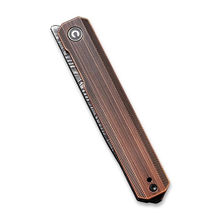 Civivi Exarch Front Flipper Knife – Black Hand Rubbed Copper Handle (3.22” Black Hand Rubbed Damascus) C 2003DS-2