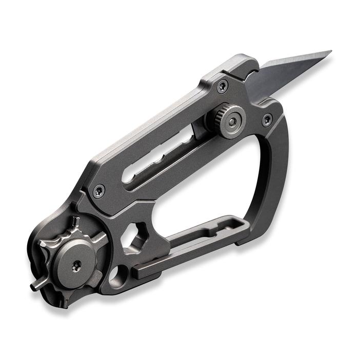 CIVIVI Polymorph Carabiner Keychain Multi-Tool – Gray Titanium (Plain 9Cr18MoV Utility Blade With Extra 3PCS 9Cr18MoV Blades) C20045-1- UK FRIENDLY CARRY KNIFE