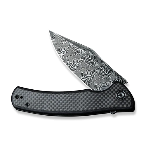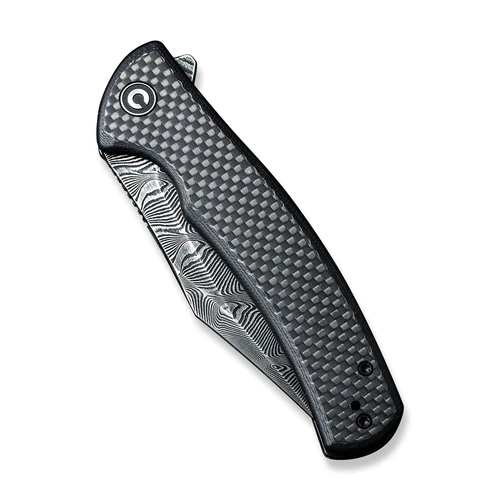 CIVIVI Sinisys Flipper Knife Twill Carbon Fiber Overlay On Black G10 Presentation With Black Steel Lock Side Handle (3.7″ Black Hand Rubbed Damascus) C20039-DS1