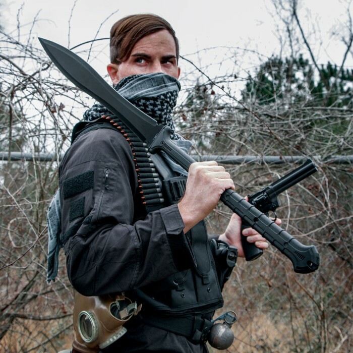 You will be absolutely amazed by the Combat Commander Thai Gladius Sword in your hands. The 20″ sharp blade is of 1065 carbon steel and has a black hard coating finish. The handle is of nylon fiber and is as tough as they get! A nylon sheath with a shoulder harness lets you carry it with ease. It is 40″ inches overall.