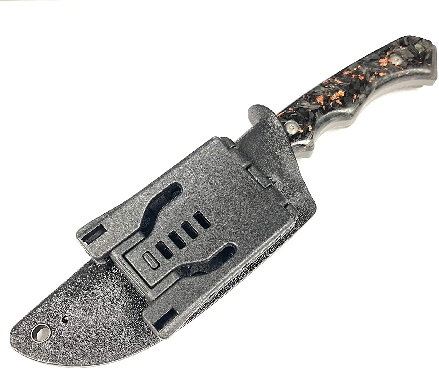 Defcon D2 Tool Steel Hunting Fixed Blade Knife I 4″ Blade I w/ Kydex Sheath I Forged Carbon Fibre Resin Handle W/ Copper Flakes – TD007BK-1