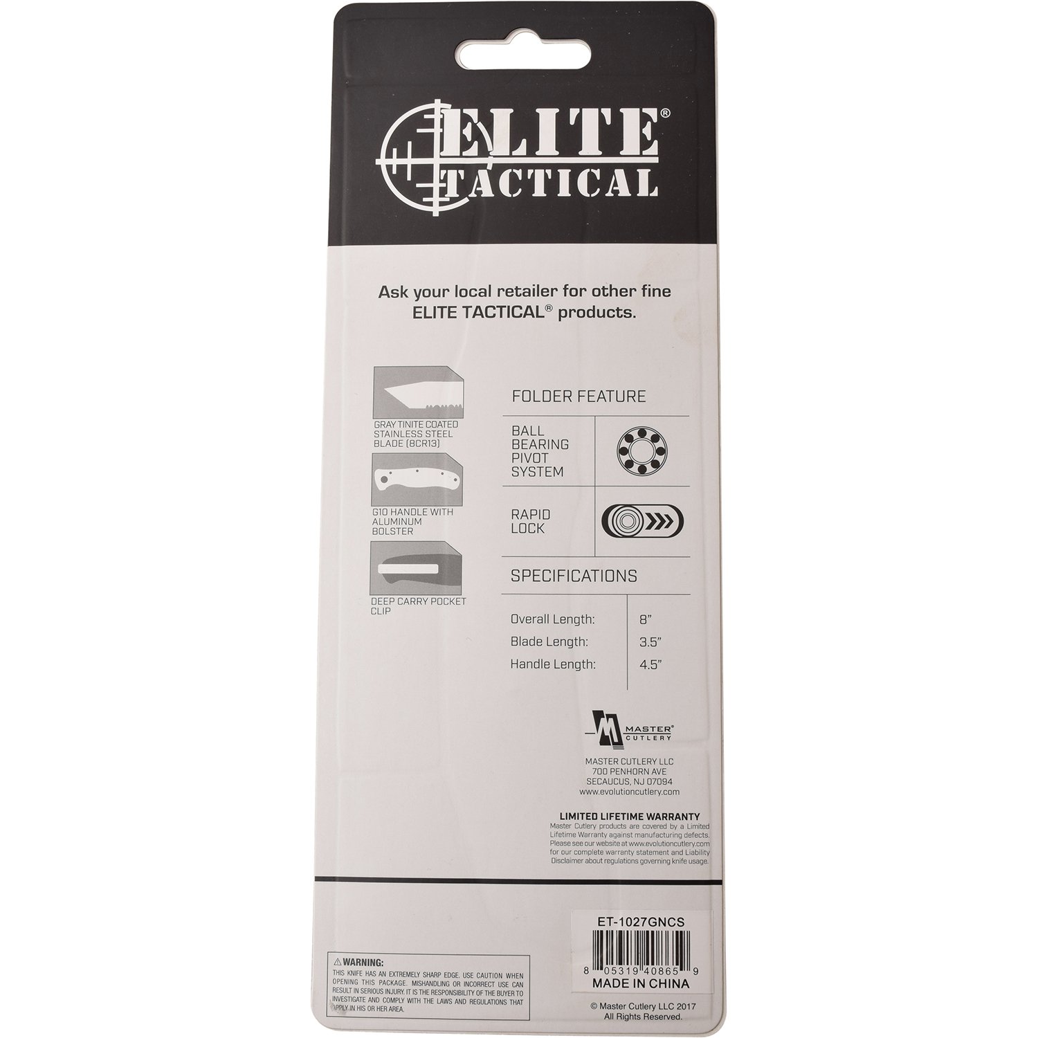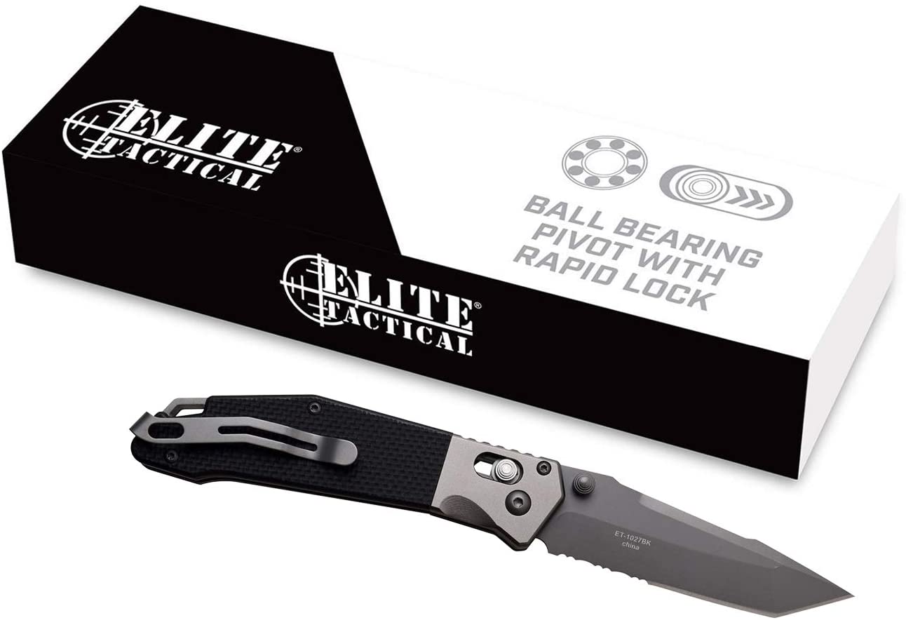 Rapid Lock Folder. 4. 5″ closed. 3. 5″ gray Tin coated partially serrated 8Cr13MoV stainless tanto blade. Black G10 handle. Aluminum bolster(s). Thumb stud. Lanyard hole. High-quality materials – Tinite-coated 8CR13 provides an excellent balance of hardness and corrosion resistance. Tactical Redefined – Deluxe tactical knife developed with purpose and aesthetics in mind