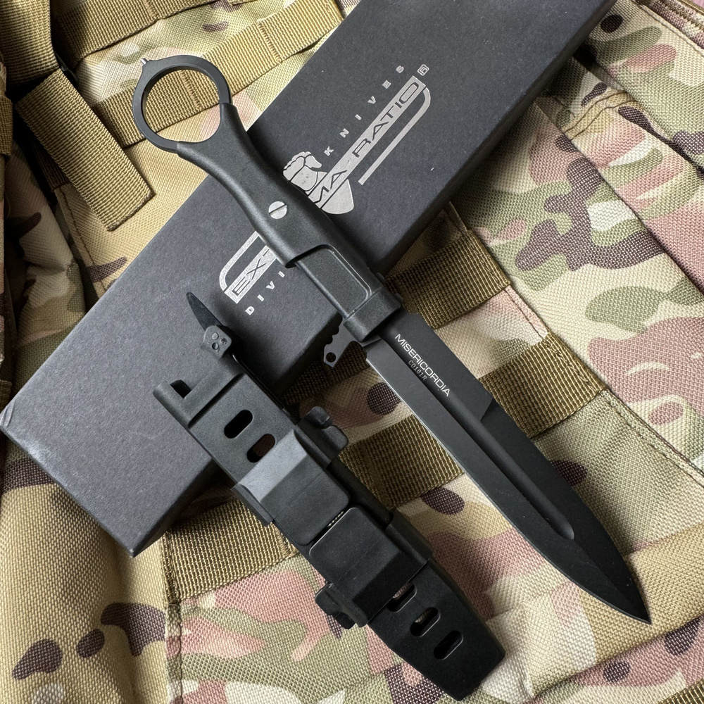 The Extrema Ratio Misericordia was adopted by the 4th Alpine Parachute Regiment, which helped develop and test the product. It is a tactical fixed blade knife, extremely light and compact, it can be used either as a main knife or as a backup blade.