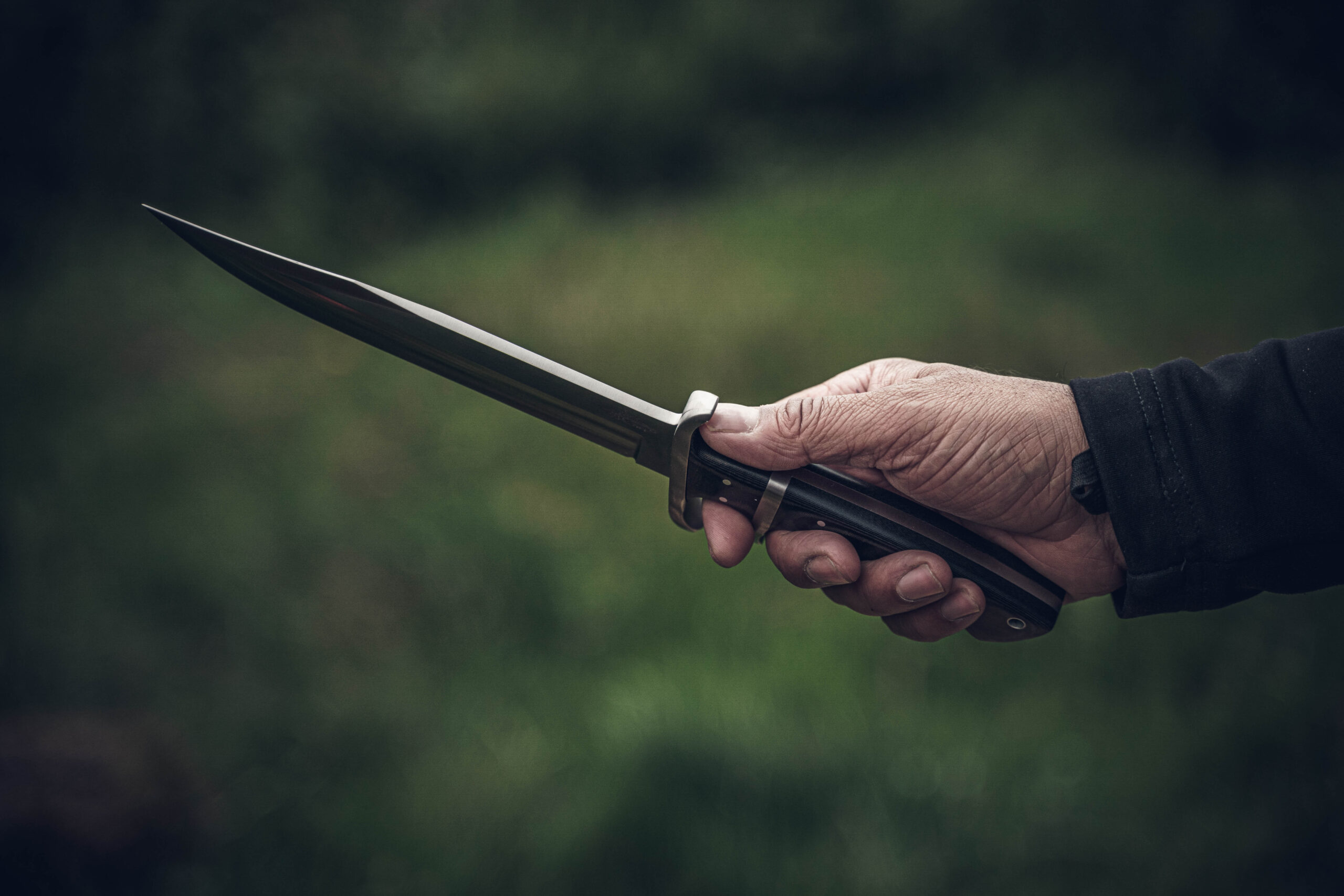 This new Hibben Assault knife combines a unique trigger-grip handle and a powerful full-tang blade to make one functional, tactical knife. It offers a 7 1/2” razor-sharp, 7CR17 stainless steel, clip-point blade, and a handle constructed of premium Micarta, nickel-silver pins, and a nickel-silver lanyard hole. The guard, pommel, and fittings are cast of stainless steel with a satin finish. This is a unique collectible that should be passed down for many future generations to enjoy. Includes a custom leather belt sheath with the Hibben Custom Design logo stamped right into the leather and a certificate of authenticity.