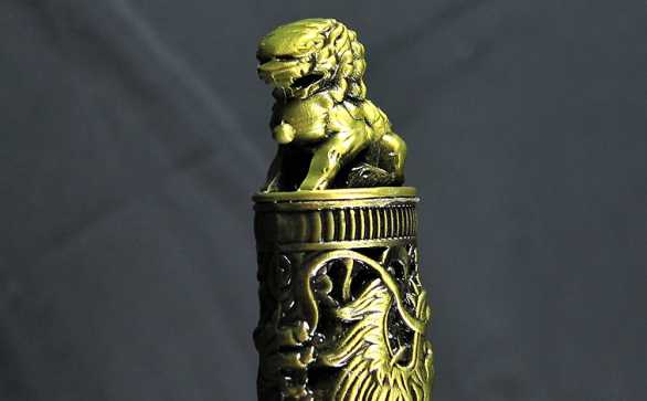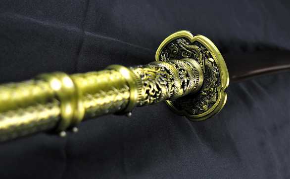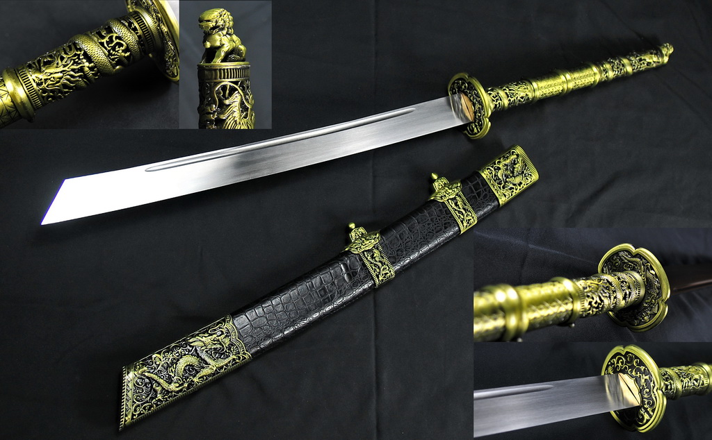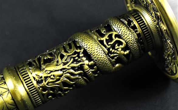 The handle is full metal with a detailed sculpted dragon and a shi-shi lion at the pummel