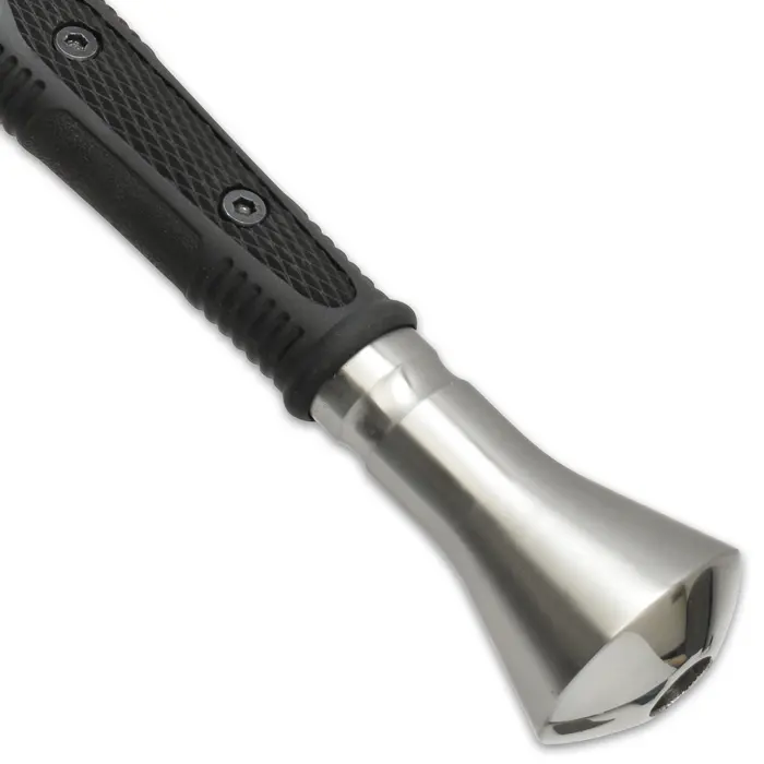 The grippy handle is heavily textured, black TPR and it has a cast 2Cr13 stainless steel pommel with a satin finish