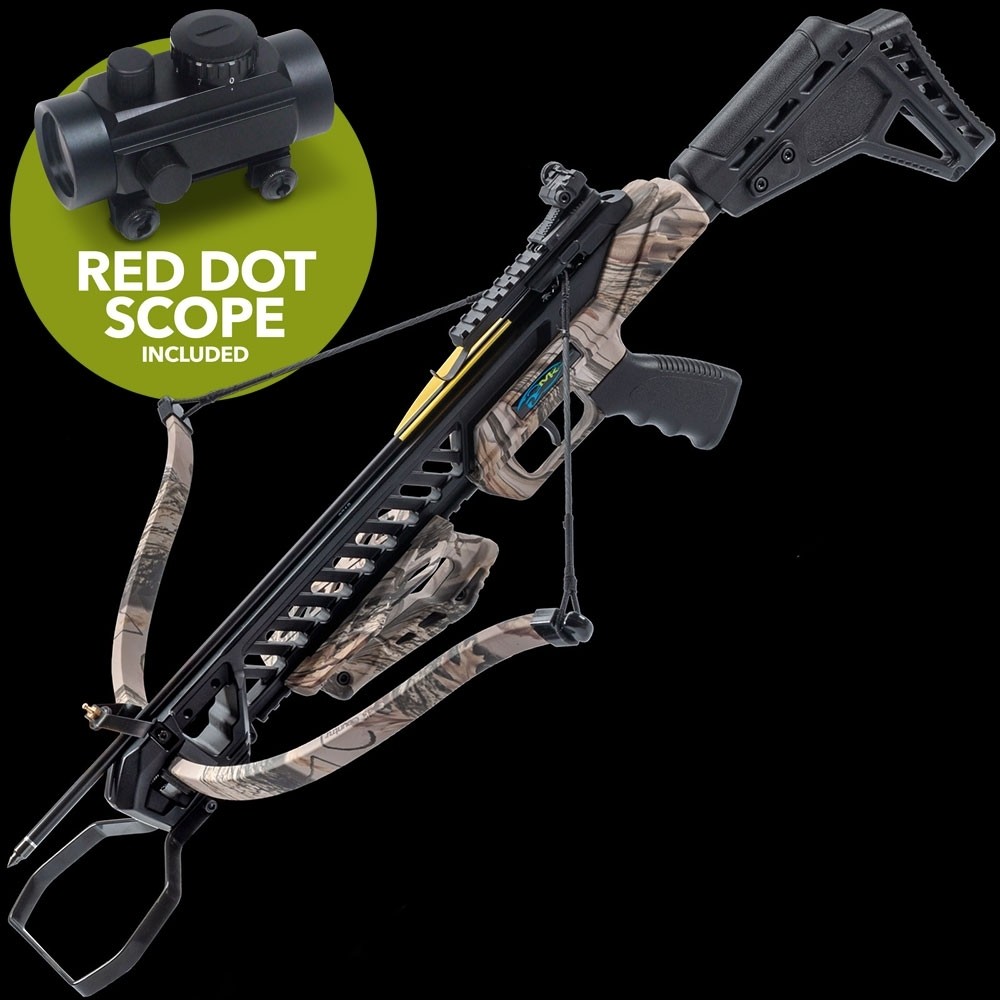 Adapting to archers of all statures, the MK-XB27GODC features an adjustable stock, ensuring both tall and short individuals can revel in its exceptional performance. Drawing this crossbow is made effortless with the included cocking string, reducing the draw weight by half. Say goodbye to the challenges posed by the MK-150 series, as they lack this convenient tool. This complete package includes a stringer and bolts, leaving no detail overlooked.