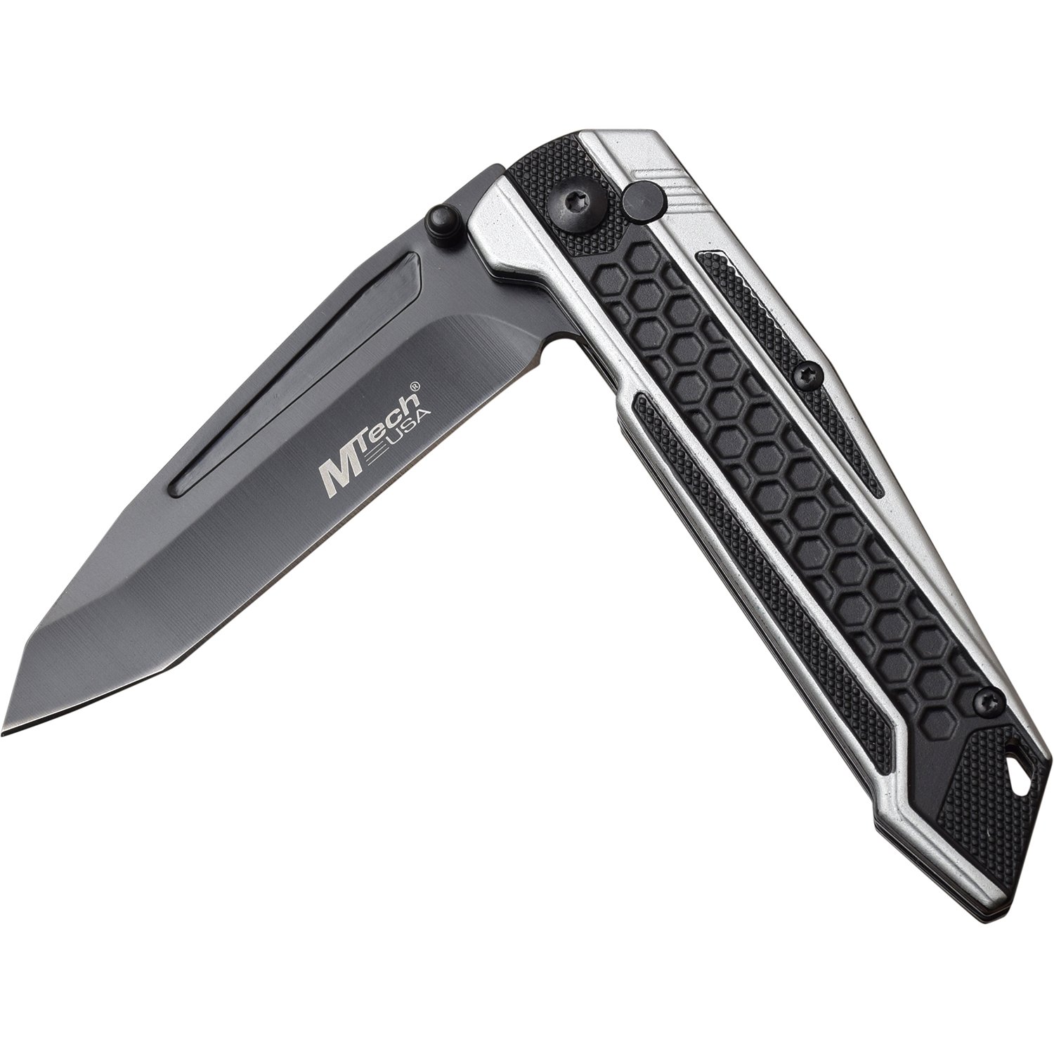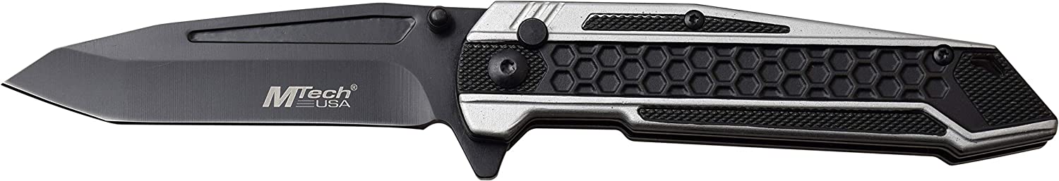 MTech USA manual-folding pocket knife with hexagon designed two-tone anodized aluminum handle is a cool knife. The overall open length of this knife is 8.25 inches long and the blade length is 3.5 inches. The knife comes with a pocket clip attached.