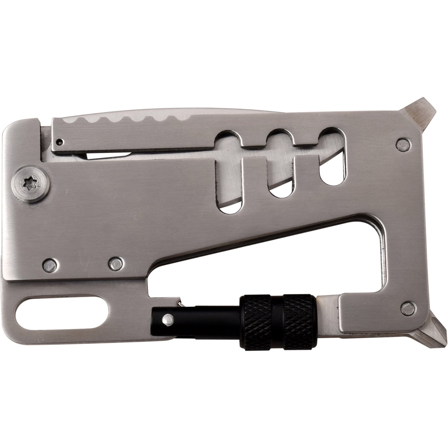 Tools include: Bottle opener l Carabiner l Phillips screwdriver l Small screwdriver