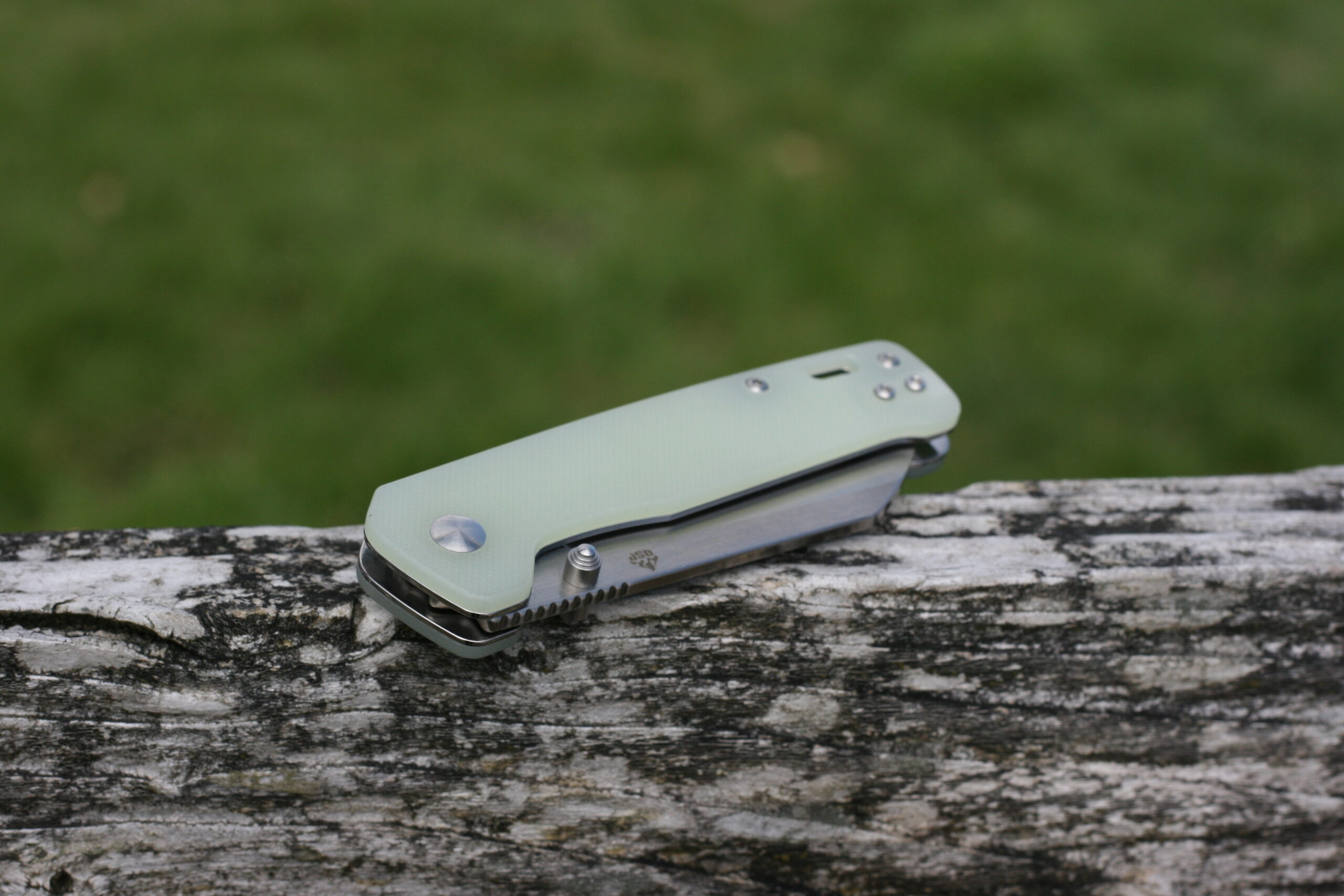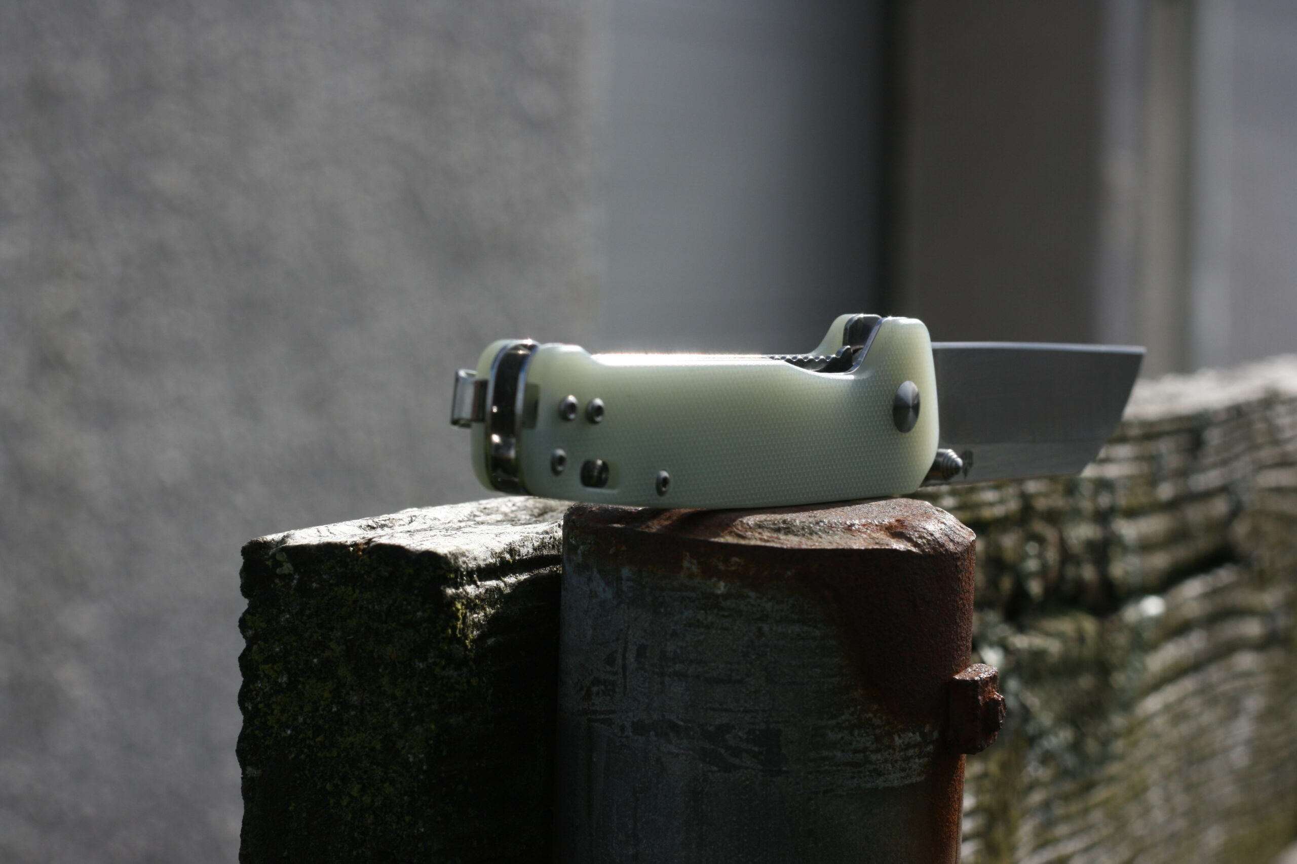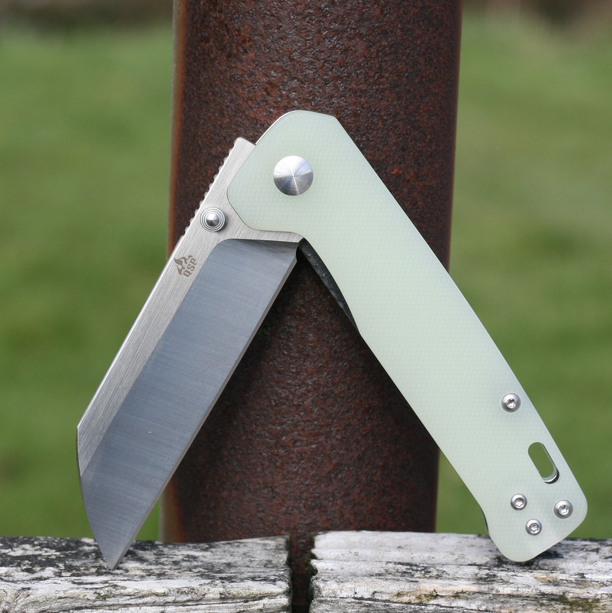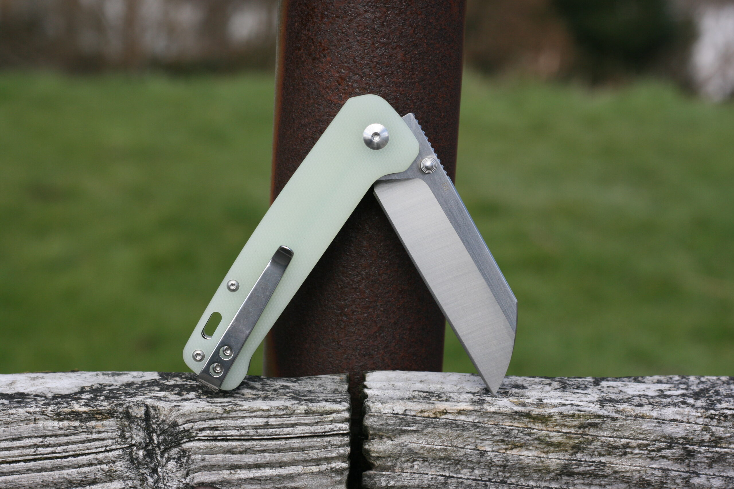 The Penguin folder provides a handy blade for chopping and slicing that really gives you a bang for your buck. The D2 blade features a sheepsfoot design that excels at slicing and chopping tasks due to its large straight edge. The blade is deployed via a thumb stud and is exceptionally smooth to operate thanks to the copper washer pivots. The handles are made from Micarta/ G10 / Carbon Fibre  that is lightly textured to give a grip but still comfortable to hold. The knife comes with a reversible deep carry pocket clip and fits perfectly in a pocket.