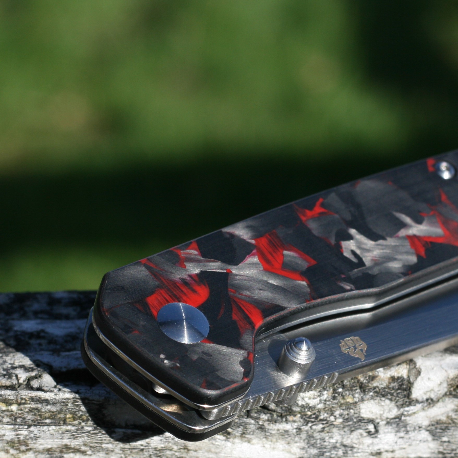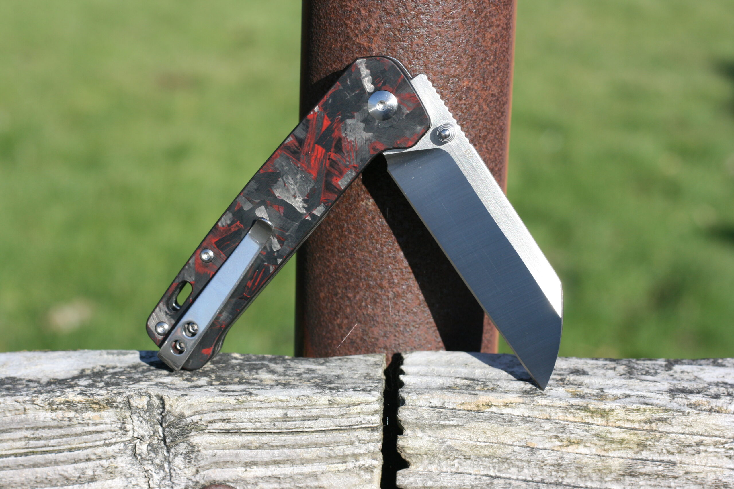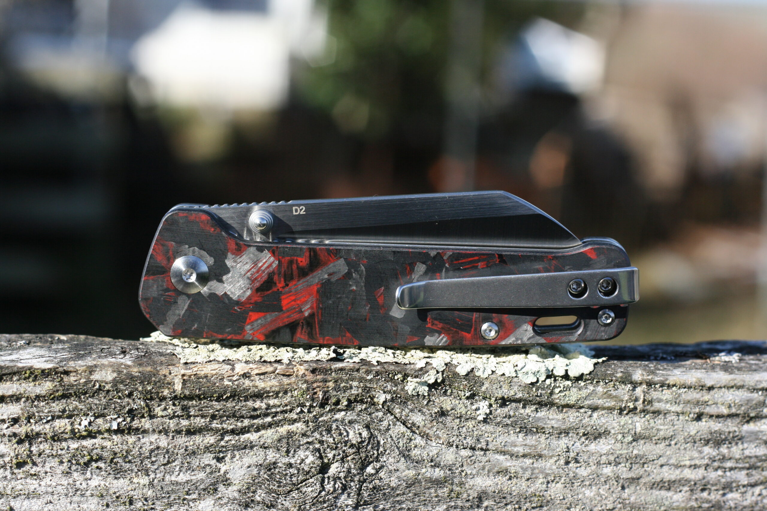 Be the first to review “QSP Knives Penguin Folding Knife 3.06″ D2 Two-Tone Satin Sheepsfoot Blade, Red Shredded Carbon Fibre Handles – QS130-TRD” Cancel reply
