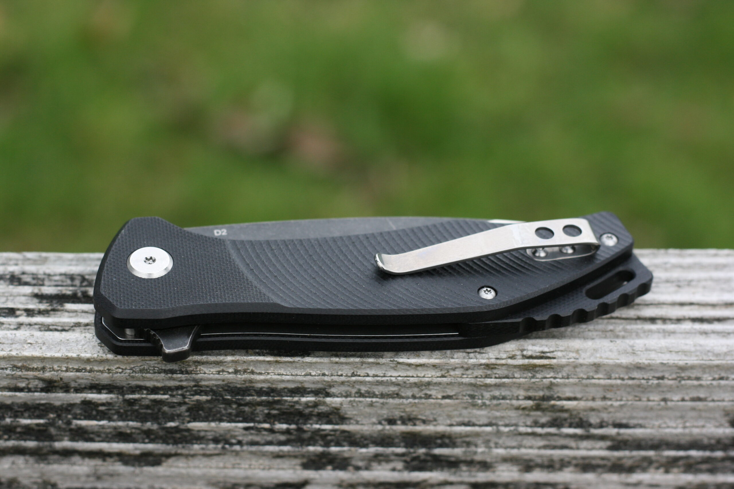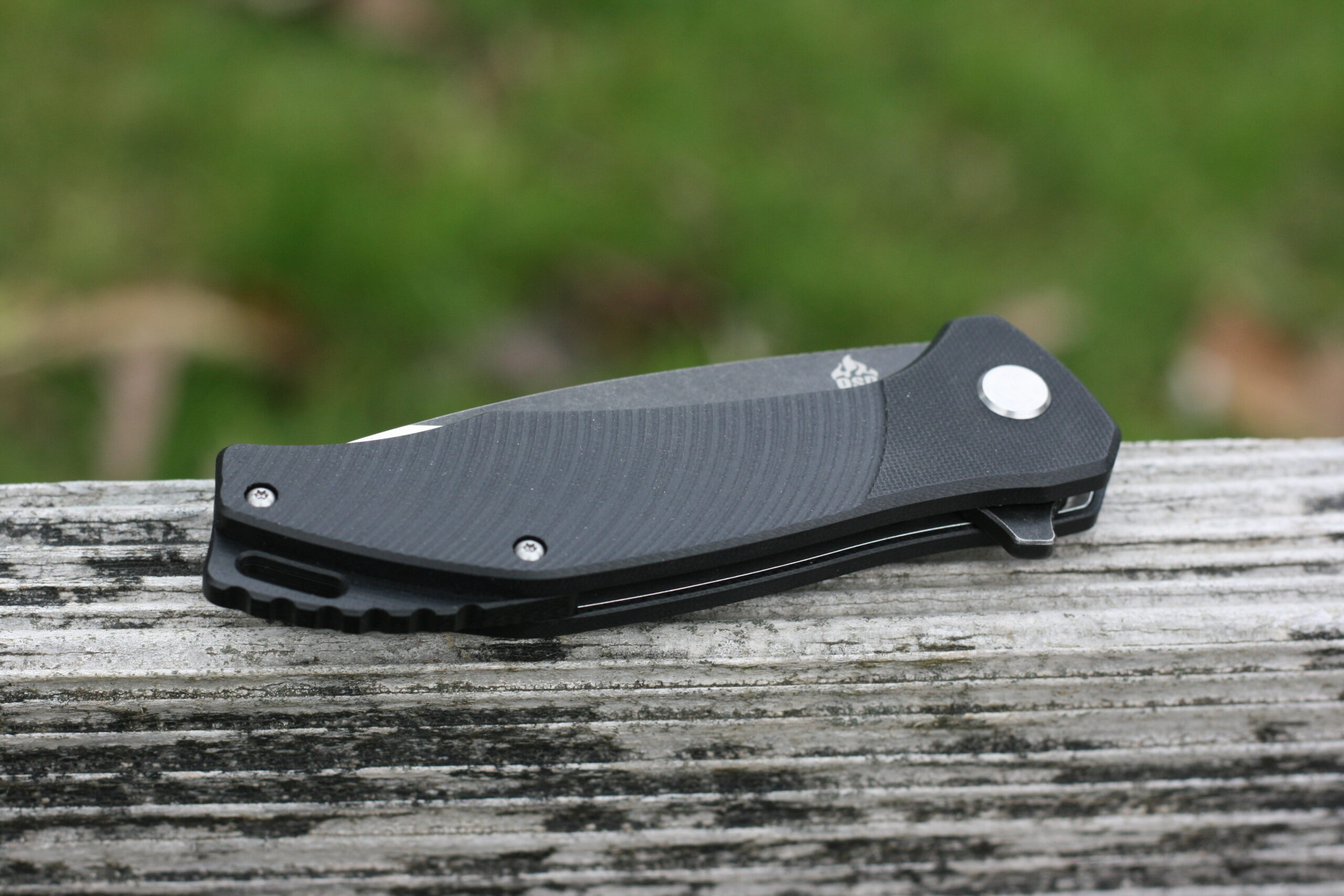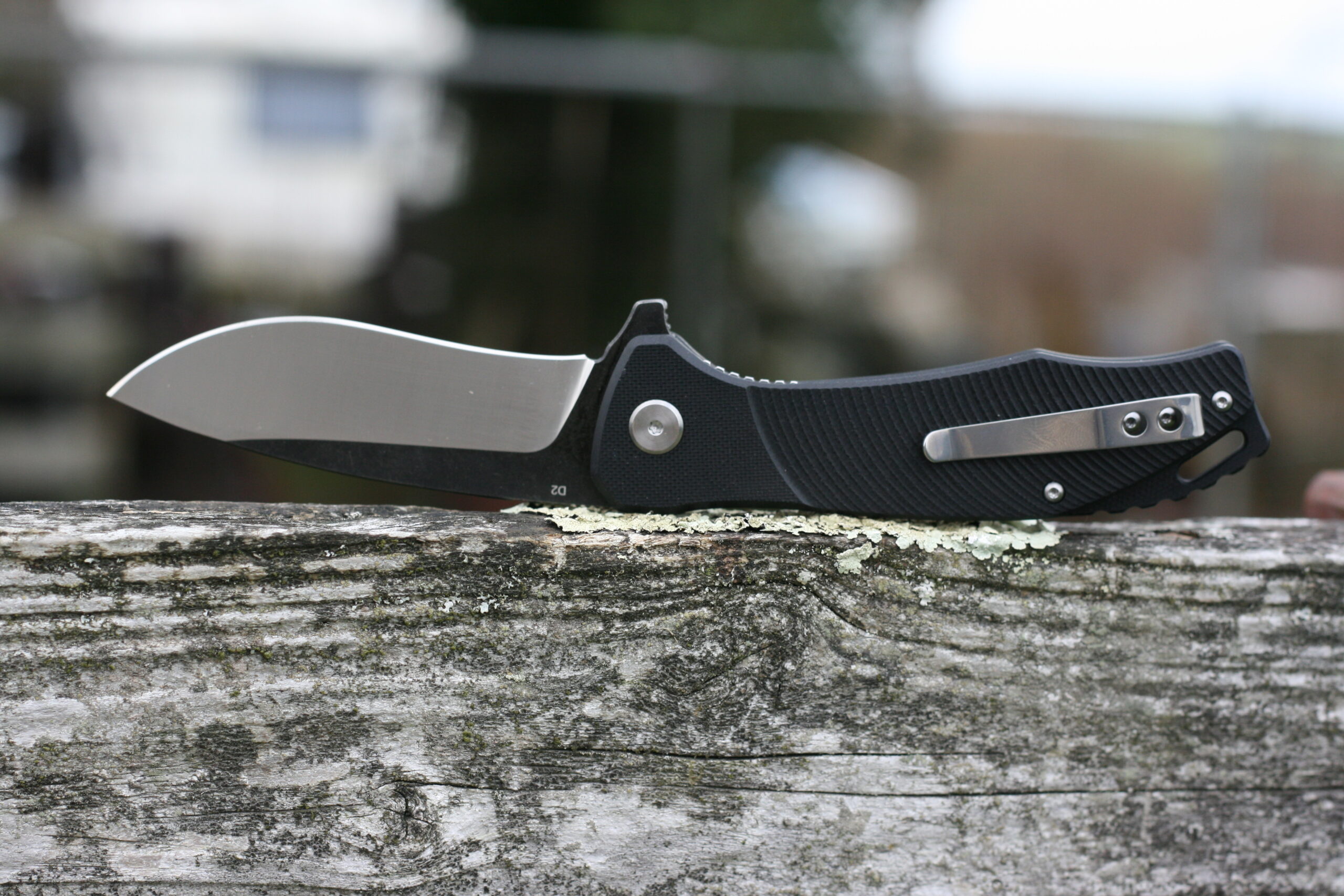 The QSP Raven is a great folding knife for outdoor adventures, or everyday use. The blade has a gentle recurve to it, and a deep belly that makes slicing and skinning tasks a breeze. The G-10 handle is directionally textured for a good grip, but not so rough it damages a pocket. The blade has a very broad and thin grind for maximum cutting performance.
