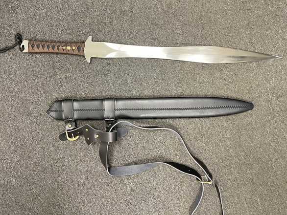 The sword is completed with a lanyard hole and paracord lanyard to ensure that it stays close at hand no matter what happens in the chaos of combat – and is complimented by a detailed leather over wood core scabbard, leather belt, and suspension system giving you the complete package at a fraction of its true value. Definitely, a must-have item