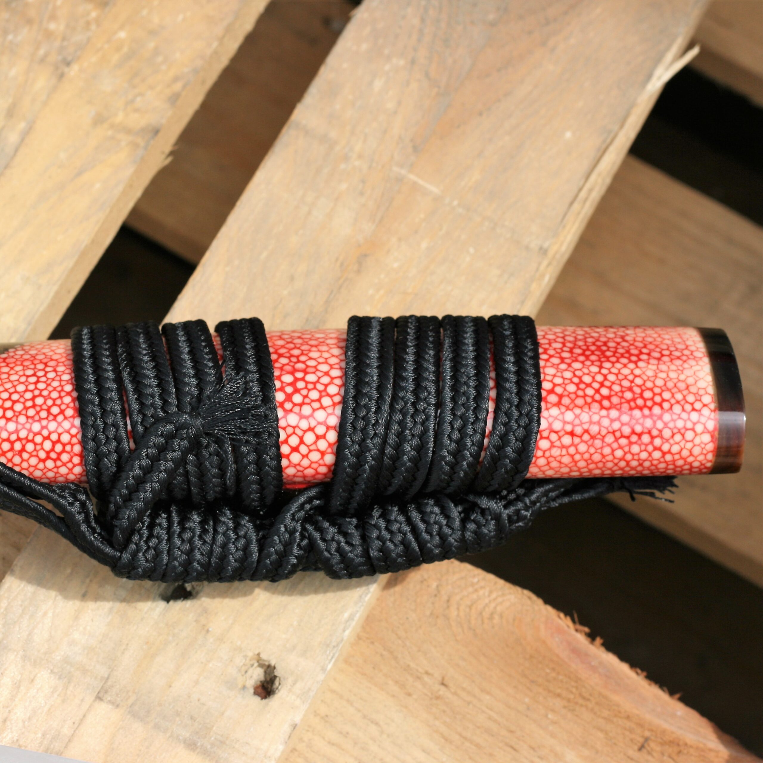 Traditional handmade katana with a stunning blade. Razor sharp light and quick. Totally unique and made in extremely small numbers. The scabbard has real rayskin on the top section. Can mix it with swords cost 3 or 4 times the price. Amazing value for money.