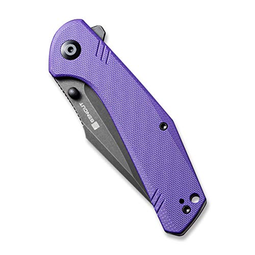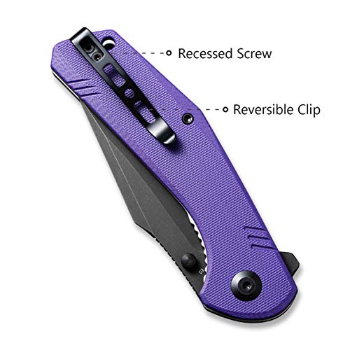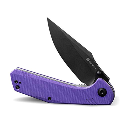SENCUT Actium Flipper Knife Purple G10 Handle (3.46’’ Black Stonewashed D2) SA02D