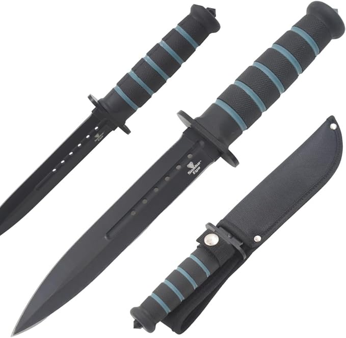 Snake Eye Tactical 12-Inches Heavy-Duty Fixed Blade Dagger-Hunting-Outdoor Survival-Knife BLACKOUT VERSION – SE-8108-10