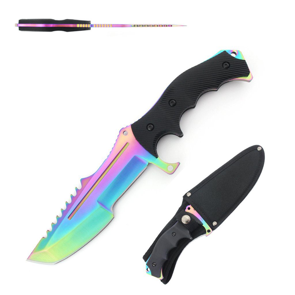 STEC 11″ Tactical Full Tang Fixed Blade w/ Nylon Sheath – Rainbow Effect – T22202COL