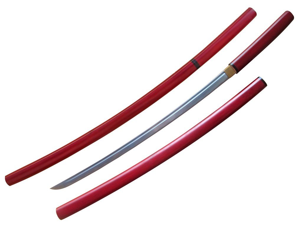 1045 Hand Forged and Factory Sharpened Blade. High quality lacquered glossy wood shirasaya fittings. One meuki peg, can be disassembled.