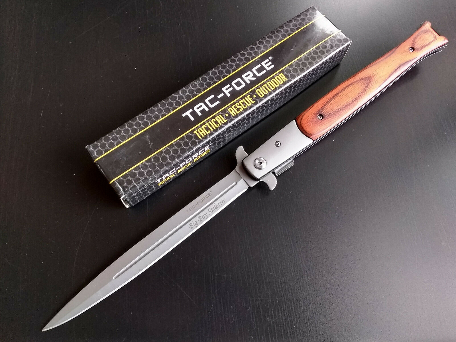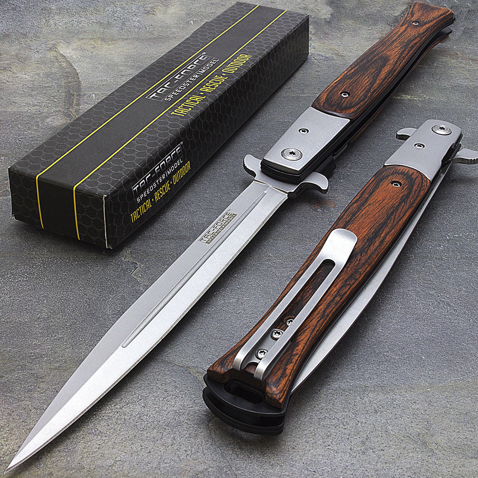 Tac-Force Wood ‘ Speedster ‘ Huge Classic Big Boy Stiletto Pocket Knife 12.5″ – TF-540RD