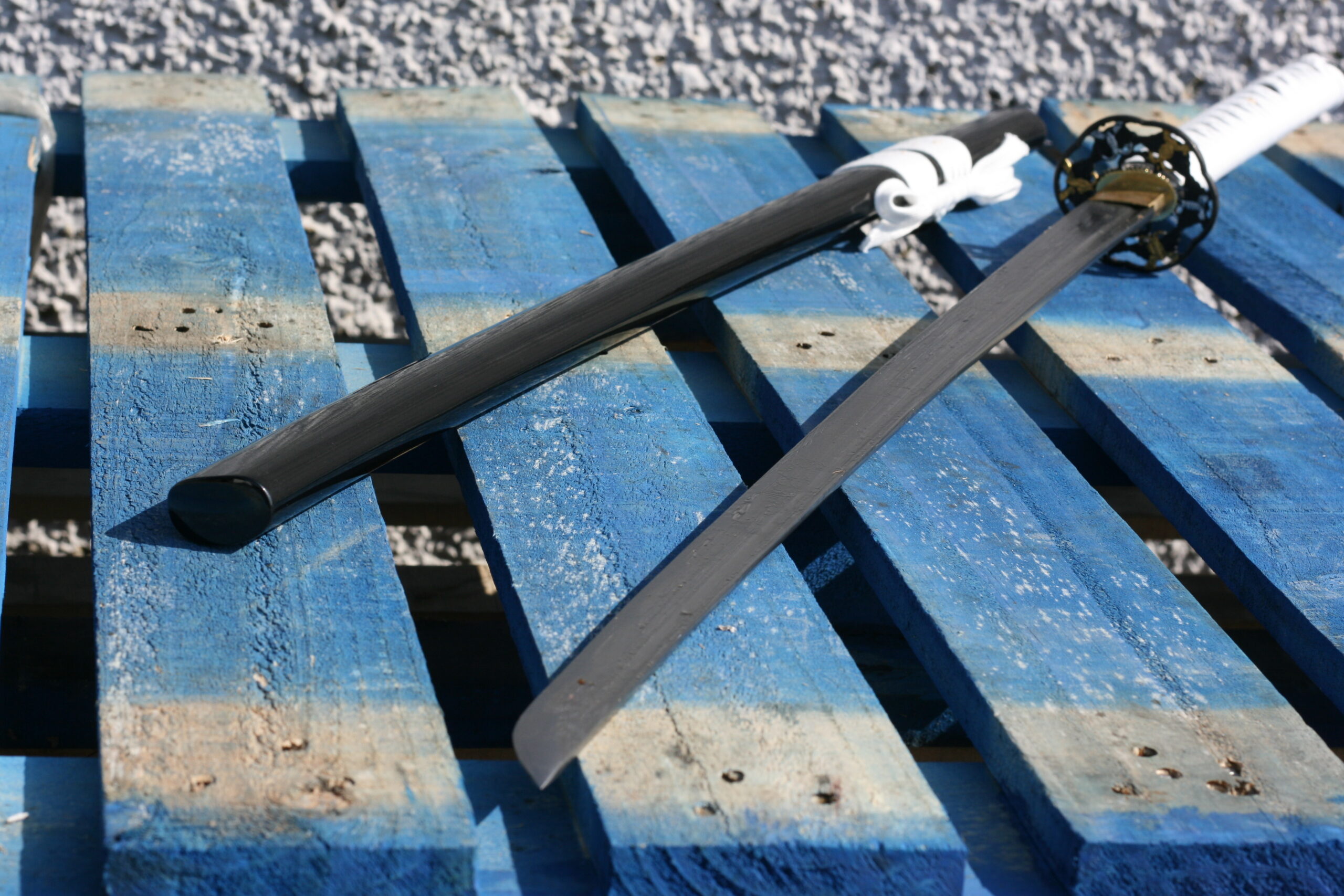 This 42″ white katana sword is a great looking martial arts sword to have. This white katana sword features a white cord wrapped handle and sharp plain blade with blood groove, designed to make clean and accurate cuts while providing the user a secure and comfortable grip. Comes with a black painted wood scabbard.