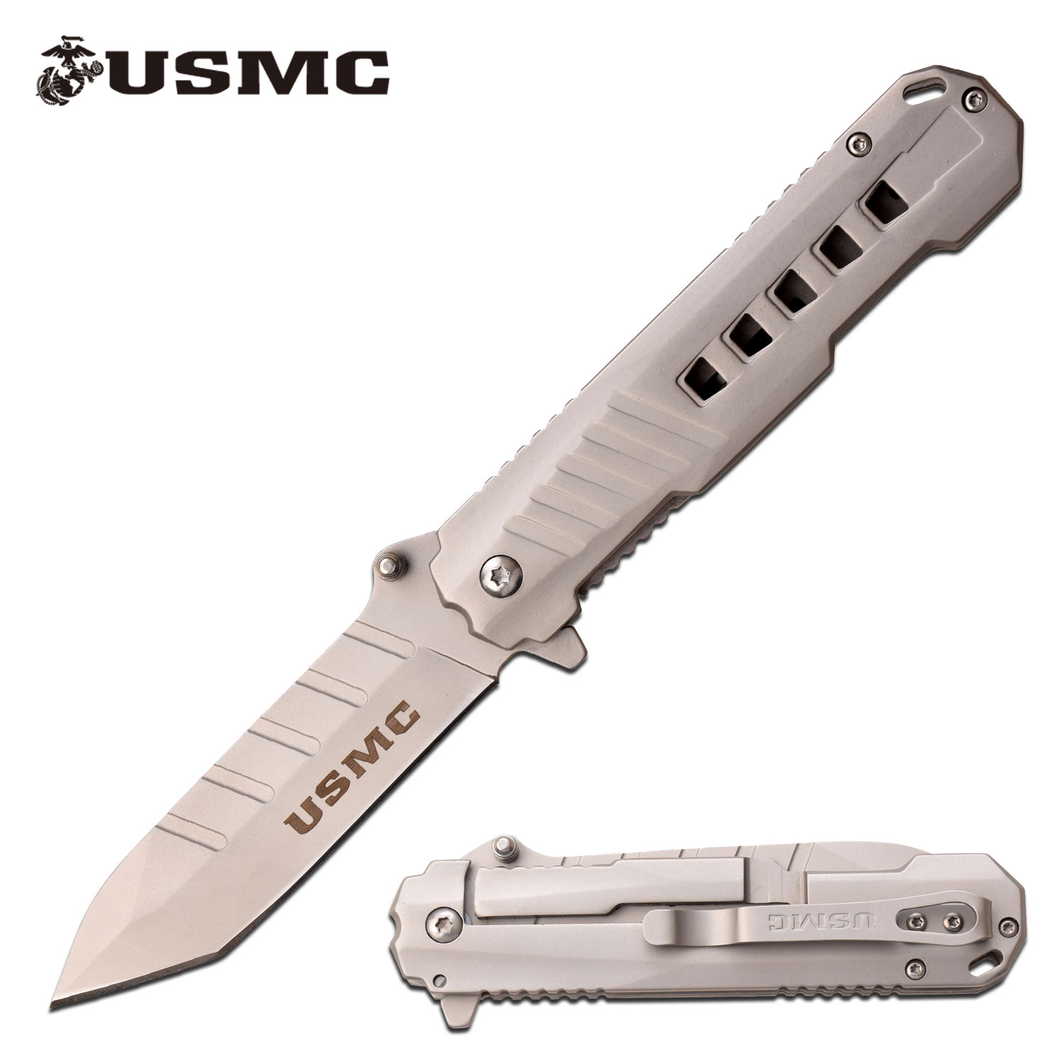 This officially licensed USMC folding knife features a razor-sharp, steel blade with a USMC etch. Access the powerful blade by engaging the effortless assisted-opening mechanism with the convenience of the blade spur. An amazing blade for the money.