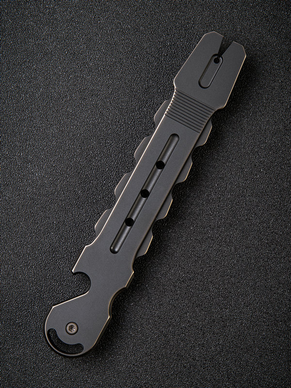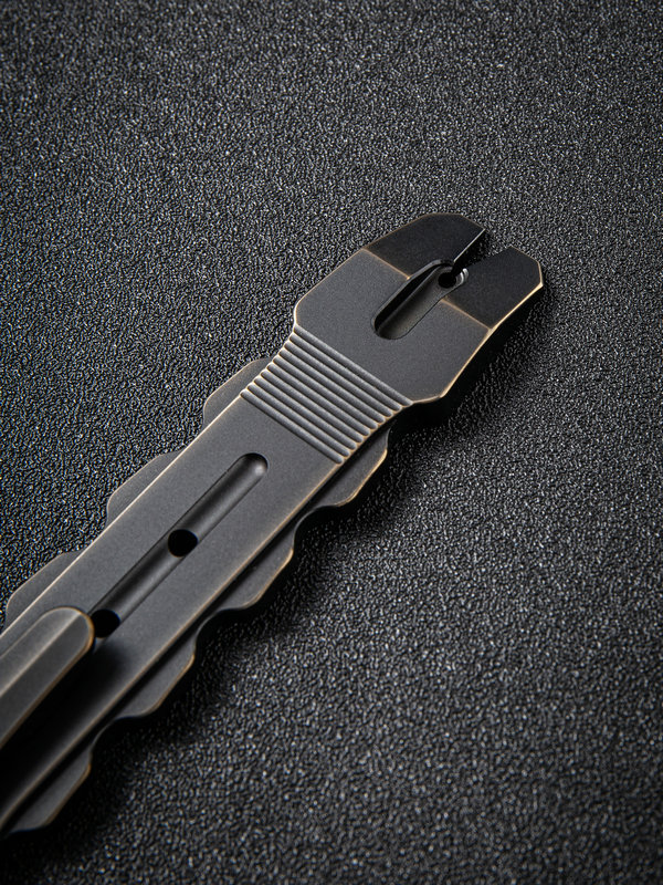 Model Number: A-08A Model Name: Gesila Overall Length: 4.76″ / 121mm Thickness: 0.20″ / 5mm Weight: 1.51oz / 42.95g Material: 6AL4V Titanium Handle Color/Finish: Antique Bronze Pocket Clip: Tip-Down Clip Material: 6AL4V Titanium Screws Material: 6AL4V Titanium