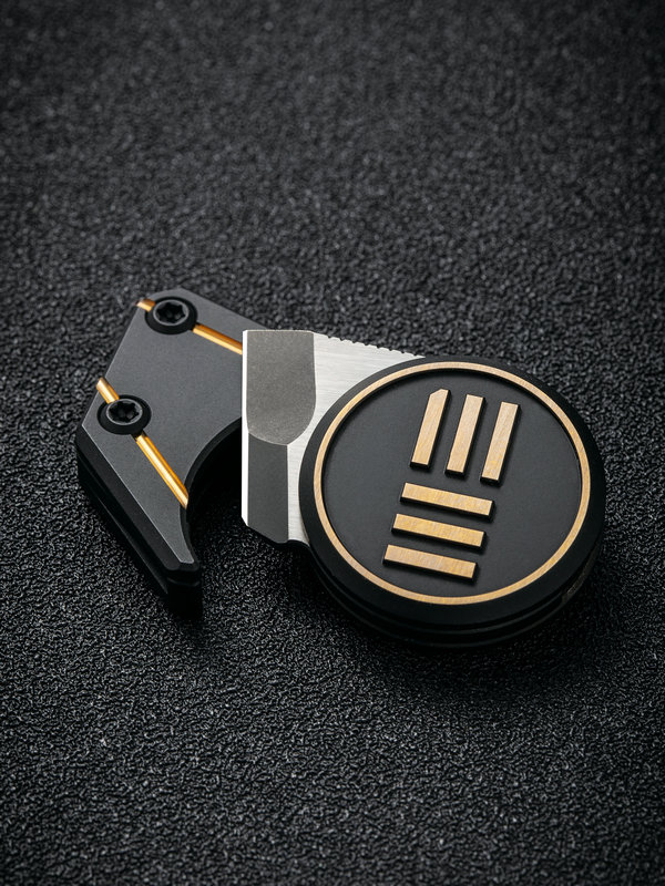 The Quark is a very compact, very useful pendant knife that you wear around the neck and use as an everyday carry. It’s about as small as it is possible to be for a user knife coming it at a scant 1.5″ overall! The titanium handle is a circular design that is just enough real estate for a two-finger pinch grip and it provides nice traction during use. The tiny chisel ground blade is enough for 90% of your daily cutting tasks and is held in the titanium sheath with a single magnet. Ostap Hel has outdone himself with the Quark, a design we think everyone should experience at least once in their lives.